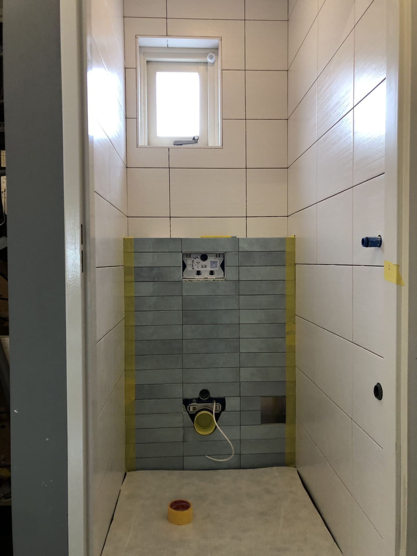 De volledige afwerking — van leidingwerk tot betegeling en montage — is met zorg uitgevoerd, met oog voor detail en duurzaamheid.
